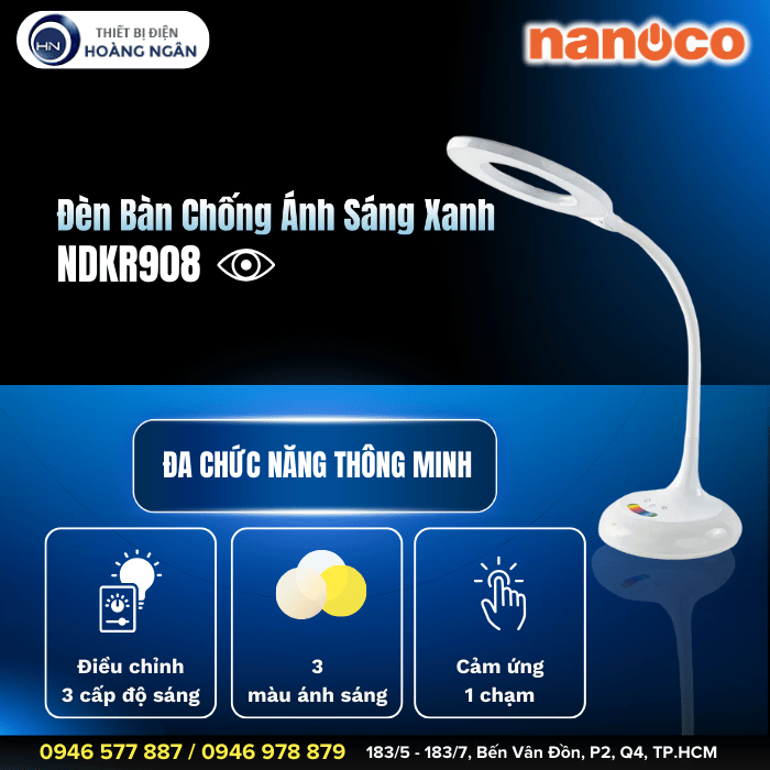 Đèn Bàn Học Chống Cận NDKR908 Nanoco chống cận với công nghệ chống ánh sáng xanh tiên tiến, giúp bảo vệ mắt tối đa khi làm việc với máy tính. Đèn cung cấp độ rọi cao lên đến 1800 lux, đảm bảo ánh sáng rõ ràng và dễ chịu trong suốt quá trình học tập và làm việc. Ngoài tăng giảm độ sáng, đèn cò mang đến 3 màu ánh sáng: 2700K (Vàng ấm), 4000K (trung tính) đến 6500K (ánh sáng trắng). Bạn có thể lựa chọn ánh sáng dễ chịu nhất. Kiểu dáng nhỏ gọn, sang trọng tăng thêm tính thẩm mỹ cho căn phòng. Tuổi thọ cao 50.000 giờ với khả năng tiết kiệm điện năng mang đến sự bền bỉ lâu dài.