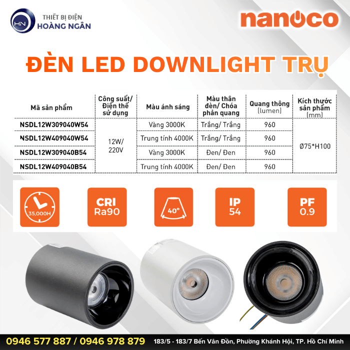 Đèn LED Downlight Trụ Nanoco - Hiệu ứng chiếu điểm sang trọng, ánh sáng tinh tế cho mọi không gian