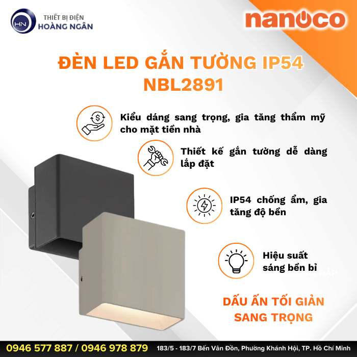 Nhanh tay liên hệ với Thiết bị điện Hoàng Ngân qua hotline bán hàng: 0946.978.879 - 0946.903.933 - 0946.577.887 để được tư vấn và nhận báo giá về các mẫu Đèn gắn tường của Nanoco.