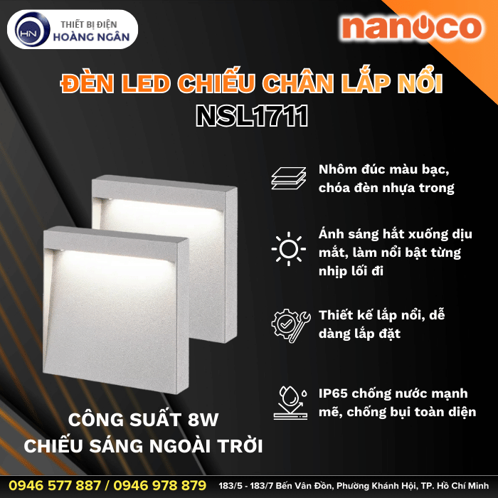 Đèn Lối Đi Nanoco hay còn gọi là đèn LED chiếu chân Nanoco - Tuổi thọ 20.000 giờ với đa dạng mẫu mã giúp tối ưu lắp đặt nổi, âm tường, gắn âm tường hay ở sân vườn. Vì có thiết kế sang trọng, mang đến độ thẩm mỹ cao cho trang trí chiếu sáng không gian nên đèn đang được nhiều khách hàng lựa chọn tin dùng. Bên cạnh đó, đèn cũng được sản xuất bởi dây chuyền hiện đại và trang bị chip LED cao cấp giúp đèn đạt sản phẩm Chất lượng cao, Bền bỉ sử dụng và Tiết kiệm điện năng.