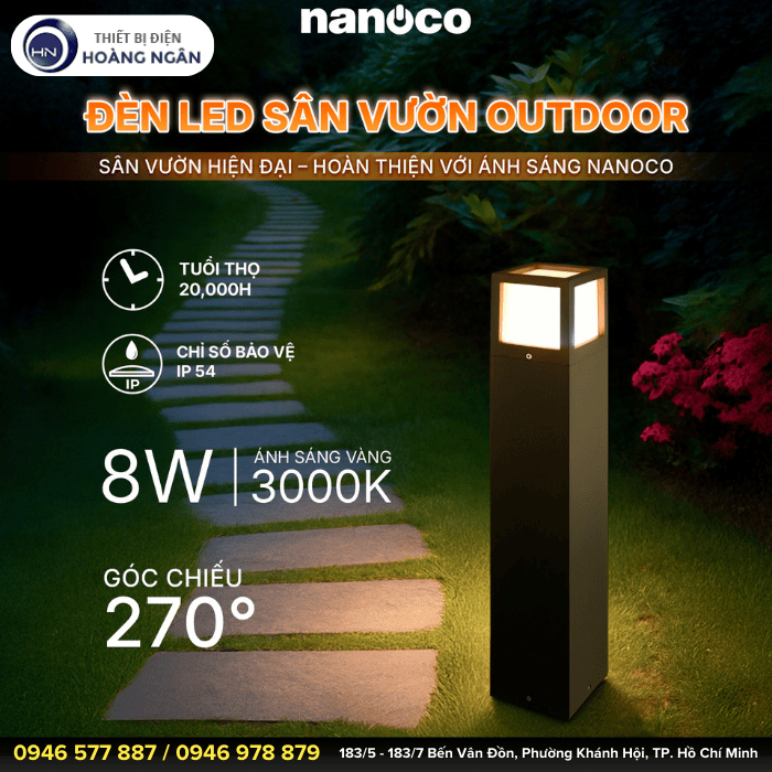 Nhanh tay liên hệ với Thiết bị điện Hoàng Ngân qua hotline bán hàng: 0946.978.879 - 0946.903.933 - 0946.577.887 để được tư vấn và nhận báo giá về Đèn Sân Vườn Ngoài Trời Nanoco và các sản phẩm chính hãng khác từ Panasonic.