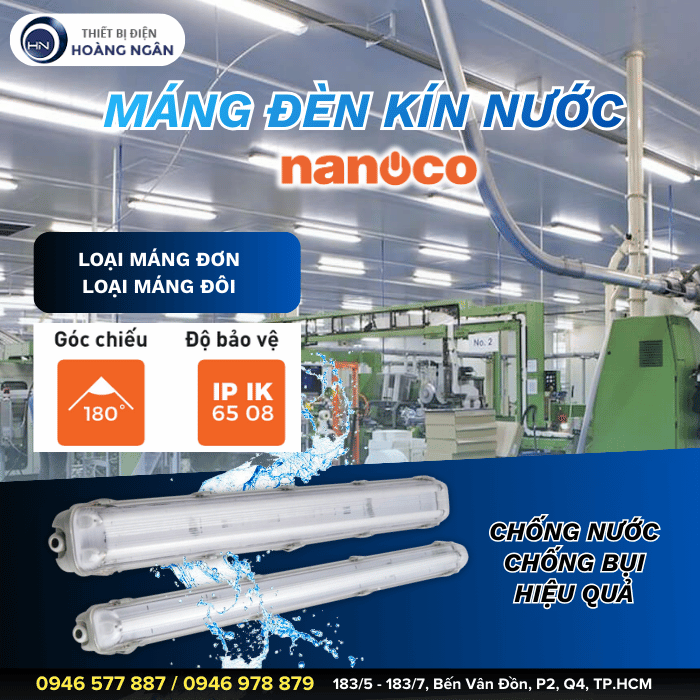 Máng đèn kín nước Nanoco là dòng sản phẩm máng đèn được thiết kế tối ưu, cho góc chiếu rộng lên tới 180 độ và chỉ số bảo vệ đạt IP65 mang đến khả năng chống nước, chống bụi hiệu quả. Đặc biệt, Máng đèn kín nước Nanoco còn đạt chỉ số IK08 - chứng tỏ tính chắc chắn, cứng cáp máng đèn có thể bảo vệ bóng đèn khỏi các tác động cơ học từ môi trường. Hiện, Máng đèn kín nước Nanoco đang là “người bảo vệ” được tin dùng để lắp đặt cùng với bóng LED Tuýp T8 ở những nơi có độ ẩm cao và nhiều bụi, giúp bảo vệ toàn diện cho quá trình chiếu sáng của đèn luôn ổn định, an toàn và bền bỉ vượt thời gian.